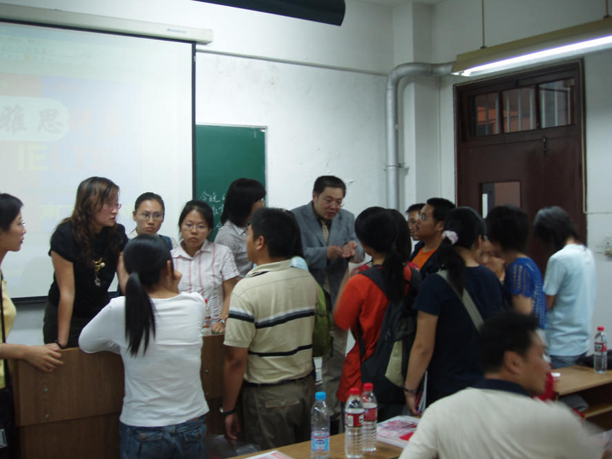 南大江浦校区讲座现场, 广大师生正聚精会神地认真聆听雅思泰斗--南京环球雅思校长韩品煜教授的精彩讲座