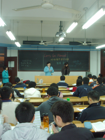 应南大江浦校留学俱乐部同学的邀请,我校留学专家韩雪影老师11月22日冒着风雨特地赶到南大,和向往留学的同学展开了一场气氛热烈的座谈会. 会上就同学们关心的问题,韩雪影老师一一做了解答