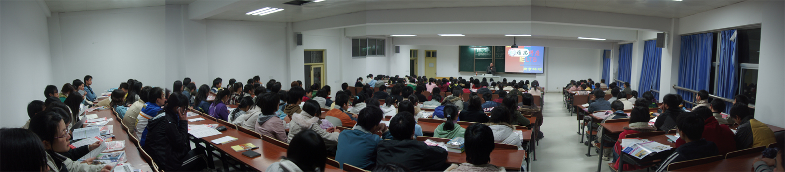 11月29日晚,天气寒冷还漂着细雨,为了关心雅思学习的金科院的同学们,我们环雅工作人员还是赶了1个多小时路准时赶到江宁方山会场准时开始讲座,没有想到金科院的同学充满热情,240人的会场座无虚席,还要加座.同学们,放心吧,听韩校的讲座绝对不会让你们收益多多,不会后悔的.