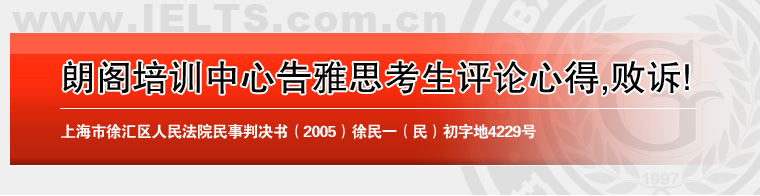 2006年一场因雅思考生评论各家培训学校服务质量引起的官司,终于在上海市第一中级人民法院终裁下得以结束,朗阁培训中心的诉讼请求被驳回,败诉。作为培训机构对雅思学习学员的评论内容,认为直接诋毁自己的商誉,进行法庭诉讼的做法,在培训行业尚属少有。众多悉知此事件者,普遍认为民办教育机构,其向社会社会公众提供的系教育培训服务,社会公众对服务质量有批评和评论的权利。作为严谨的培训机构需要严于自身,完善教学,为广大学员提供宽容、高质的学习环境。