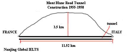 两个tunnel的图,一个叫什么the mont blanc 什么什么tunnel,是建在一个山的下面。离山顶