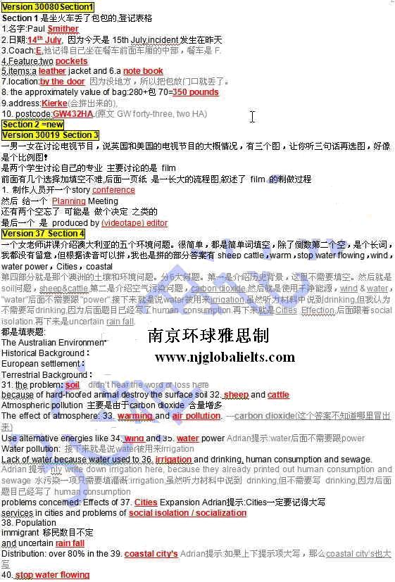 听力第二部分是新问题,全是选择题,但只要你预先来得及看清选项,就不难做,记得是说一个公园在1951年通过了国家森林公园的测评,获得了正式的地位(考点),这个公园位于边远地区(考点),现在有很多动物供观赏,比如说PONIES,它们的生长与当地环境融合得相当好(考点),然后人们要来这参观露营的话,要在短期内就离开(选项之一)不能用火,要用石头打火(选项之一),远离公路露营(选项之一)。SECTION ONE我曾经记得好像看过机经上有,几乎是一模一样,但是我自认为自己的听力水平是七分以上,因此没怎么细看,结果真考了,我一看题是机经上曾经有过的,一高兴,结果哗一下有两题没听到,偏又没背过机经,两题都错了。看来这回是考不到八分了。其实IELTS的听力并不难,再难也难不过BBC和CNN吧,可是考试时人会紧张,而且写答案速度慢一些都不行,有些东西就这么一下过去了,听到都不记得,所以这种考试方法个人认为,其实并不能真正反映一个人的英语听力水平,如果真是非考试时间听这些东西,七分都丢脸死人了。