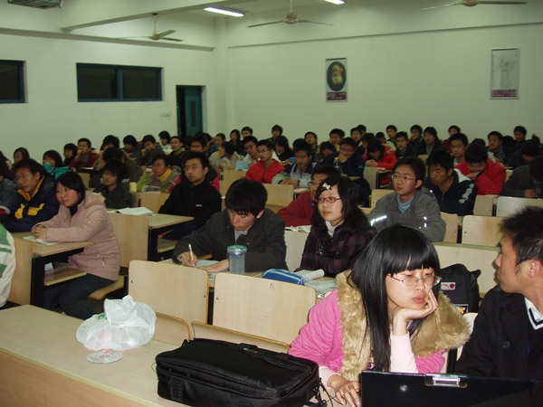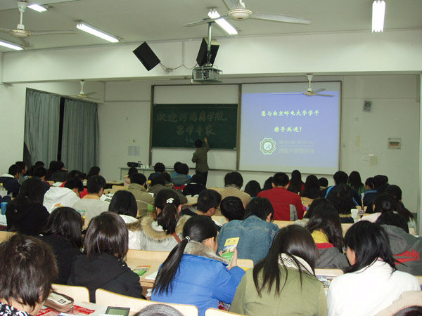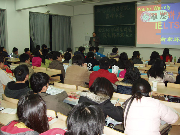 出席此次高校巡讲的嘉宾有:南京环球雅思学校校方有校长韩品煜教授、邓老师等,河海大学(商学院)袁老师、刘老师等,以及南京邮电大学学生,此次高校巡讲的气氛浓重热烈、异常火暴。