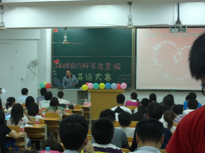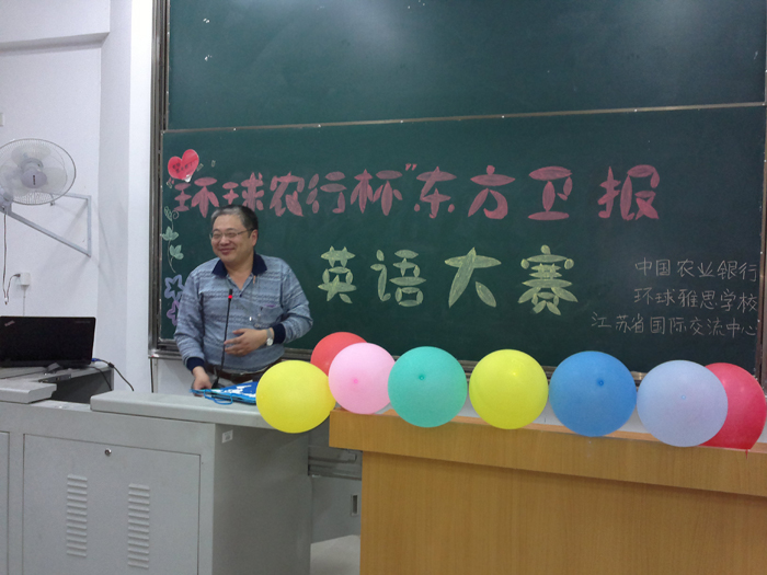 南京环球雅思学校与中国国农业银行、江苏省国际交流中心、东方卫报强强联合,于5月10日在南京邮电大学举办了“环球农行杯”东方卫报英语大赛,现场气氛热烈,活动高潮迭出。南京环球雅思学校校长韩品煜教授也受邀作为嘉宾评委出席,受到现场同学的热烈欢迎。