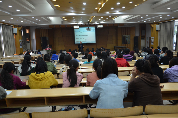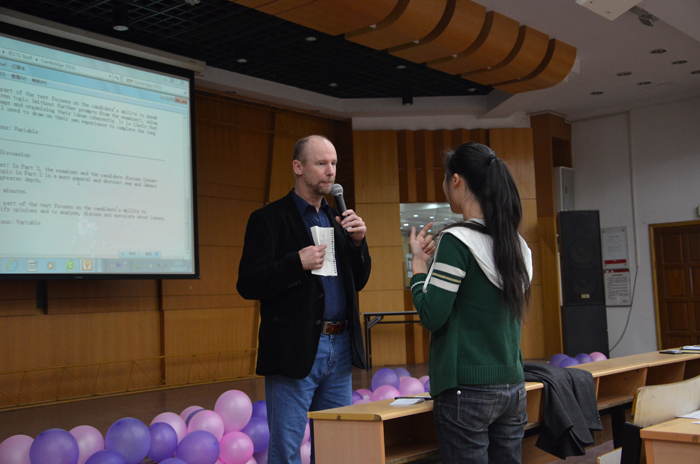 南京环球雅思总部韩品煜教授受邀来到南京艺术学院,给广大同学进行了一场生动的雅思讲座。韩品煜教授与现场同学面对面交流雅思学习方法,外教David Gaw现场模拟雅思口语考试过程。
